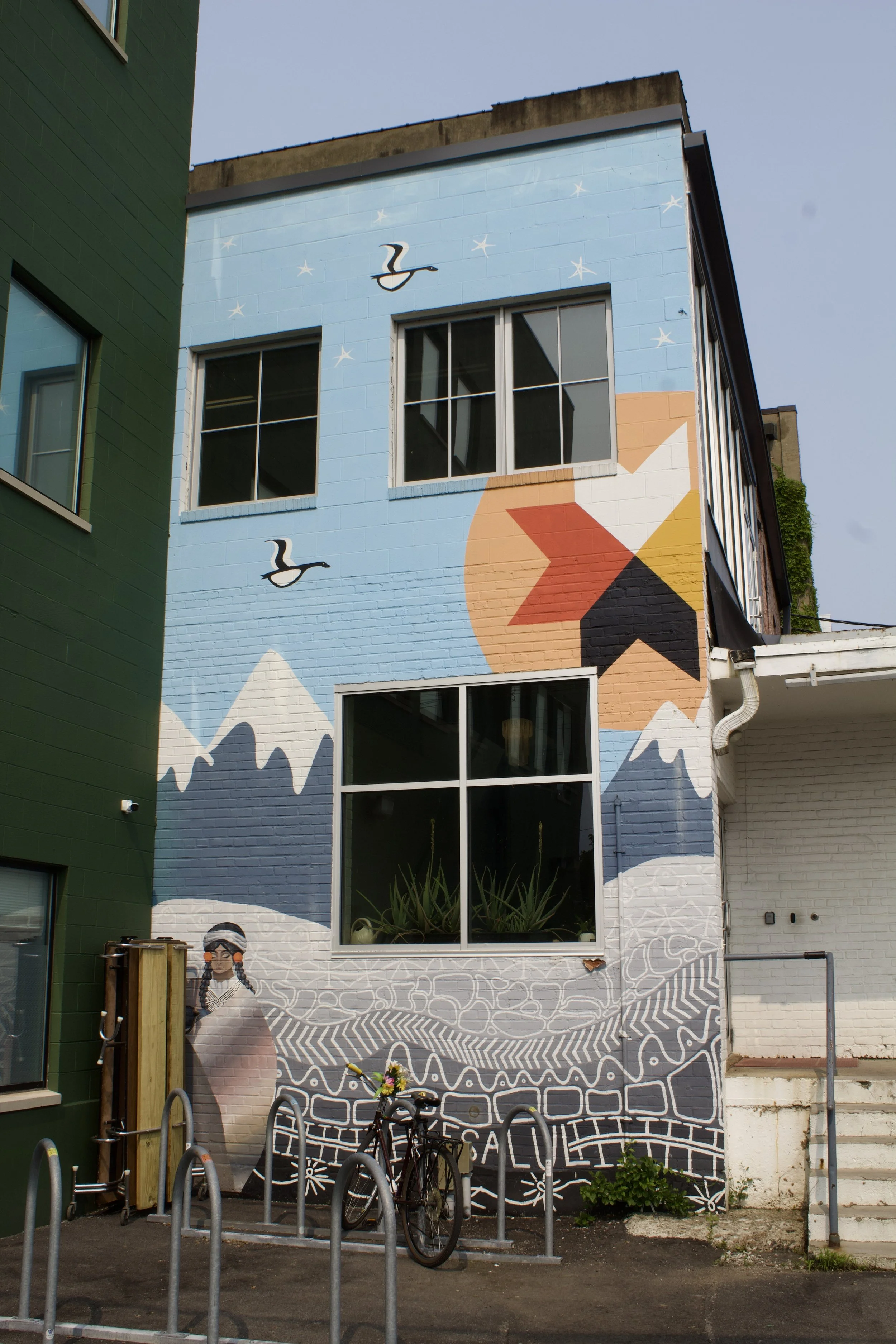 My first mural, created as a tribute to my late Mi’kmaq great-grandmother and honoring her heritage. Funded by a grant from a community project called “Ithaca Justice Murals.”